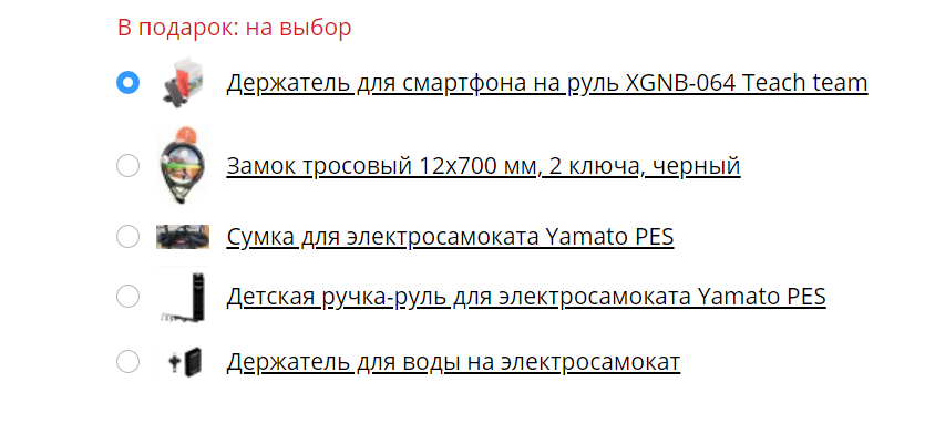 При покупке любого вида электротранспорта в Саратове мы дарим в подарок нужные аксессуары. Перечень подарков вы можете увидеть в карточке товара.