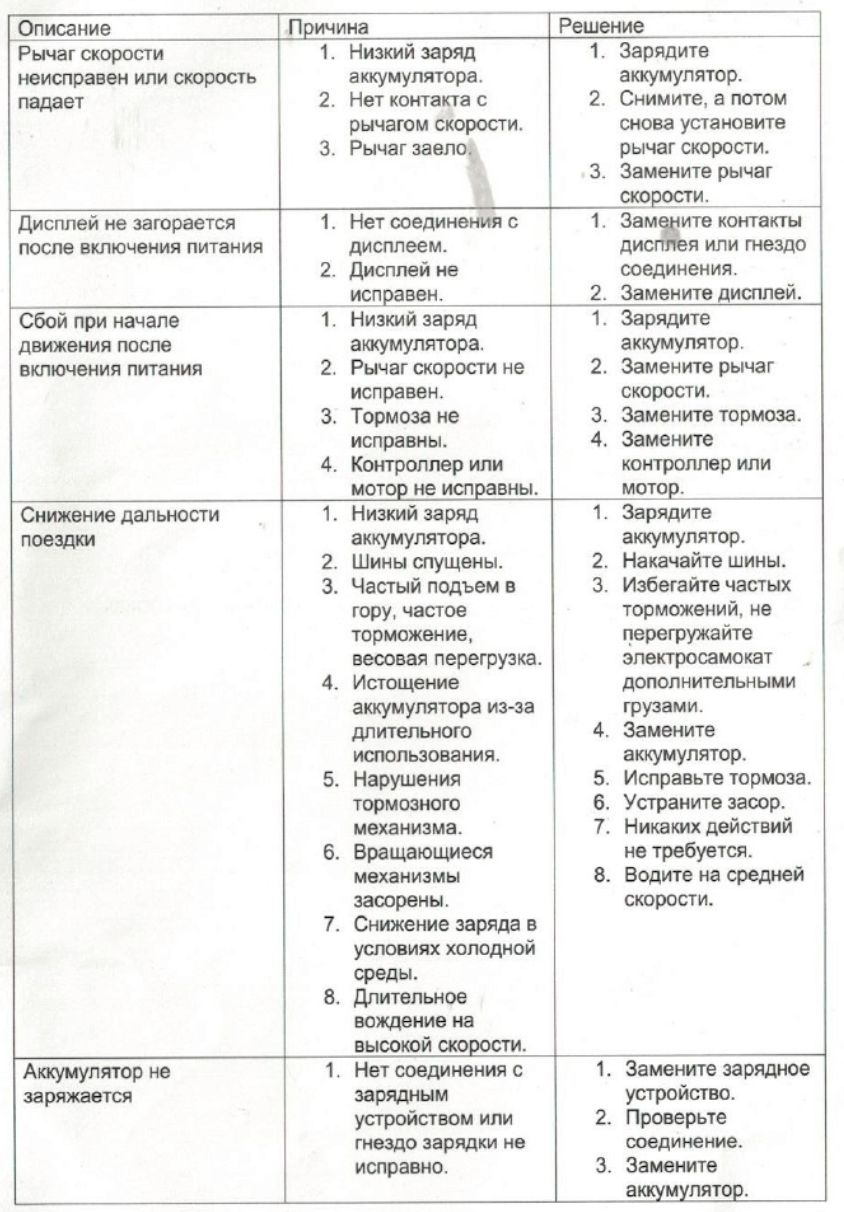 16. Не опускайте электросамокат в воду, и старайтесь избегать поездок в дождь. Не мойте электросамокат струей воды под давлением. Если электросамокат намок вытрите его сухой тряпкой и обратитесь в сервисный центр.