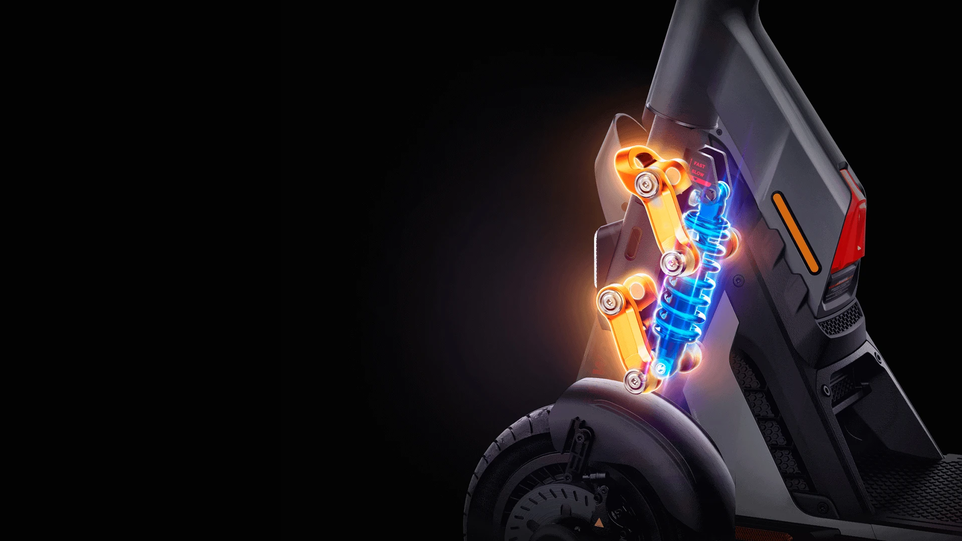 Ninebot GT2 оснащён полным приводом – спереди и сзади установлено по мотор-колесу с воздушным охлаждением, мощностью в 3000 Вт каждое.