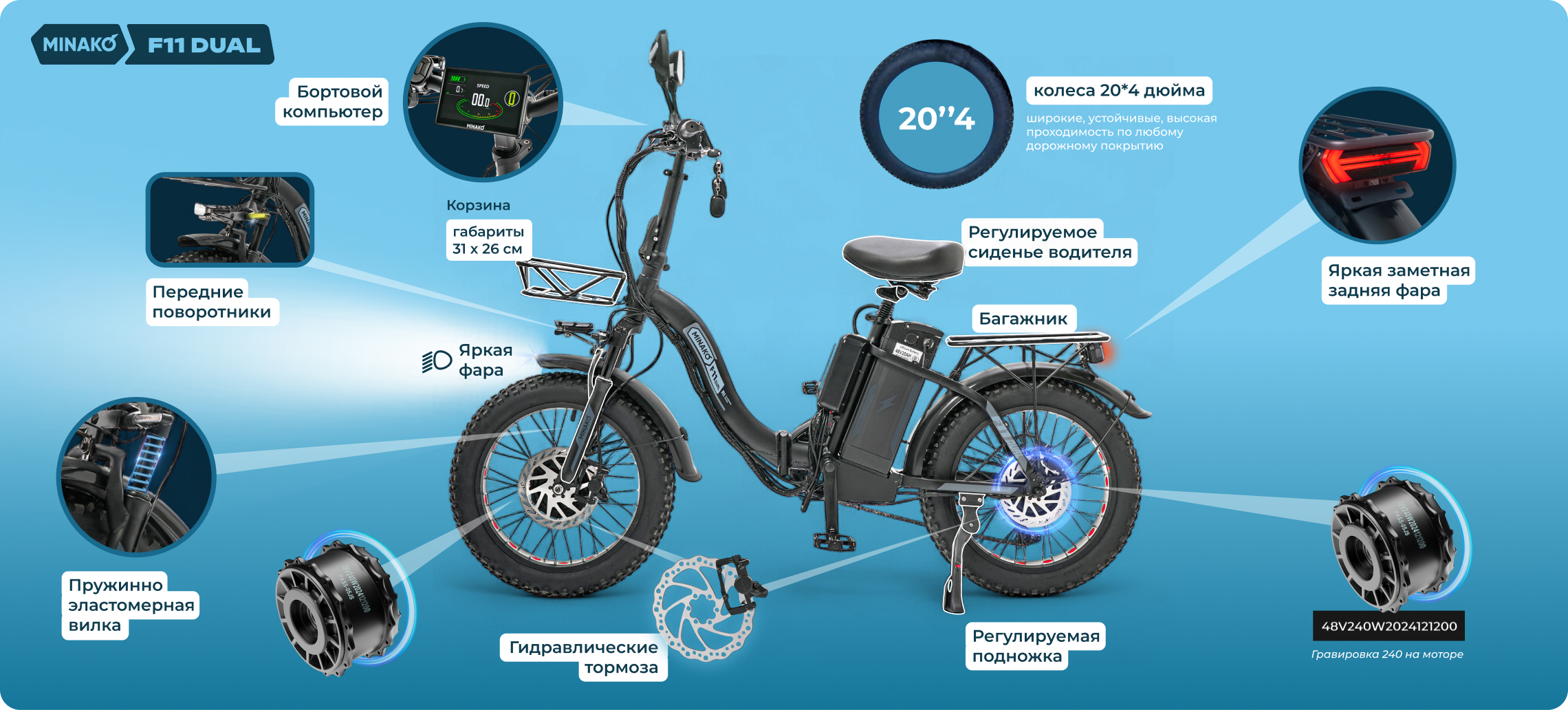 Электровелосипед Minako F11 Dual, черный